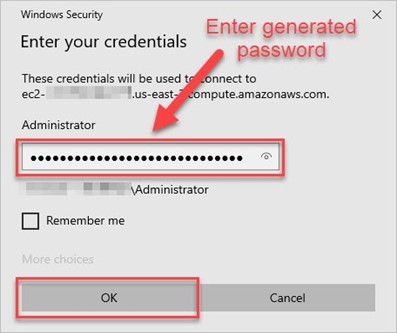 RDP will next prompt you to enter the decrypted password. This will be the password you decrypted in step 4 above.