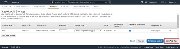 Click ‘Next: Add Tags’ after deciding on your storage needs.