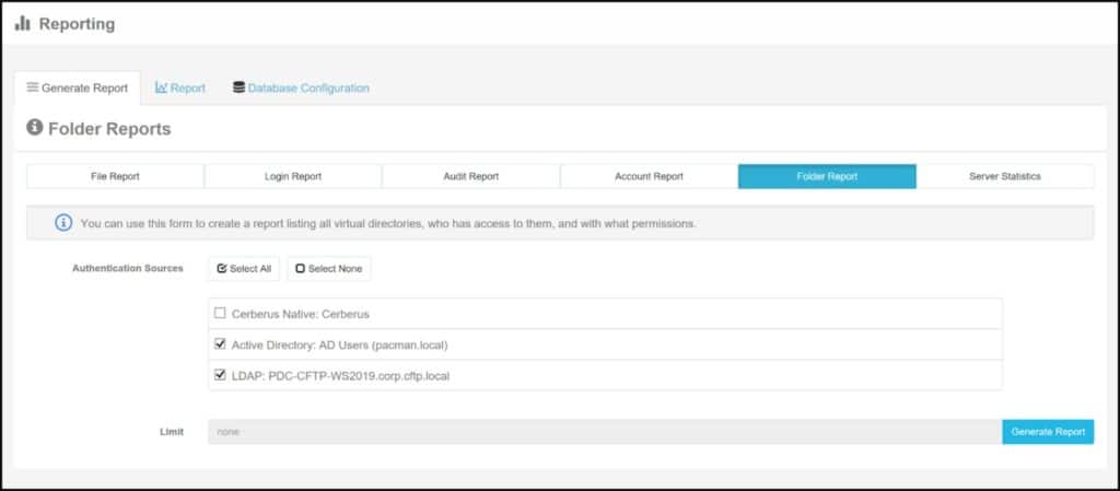 We are excited to bring administrators a brand new report to display access to your Cerberus FTP folders. Together with the recent addition of secondary group memberships and AD & LDAP reporting features, this report combines and displays all users capable of interacting with your folders, their permissions on the folders, and whether a virtual folder was assigned to the user directly or from a group.