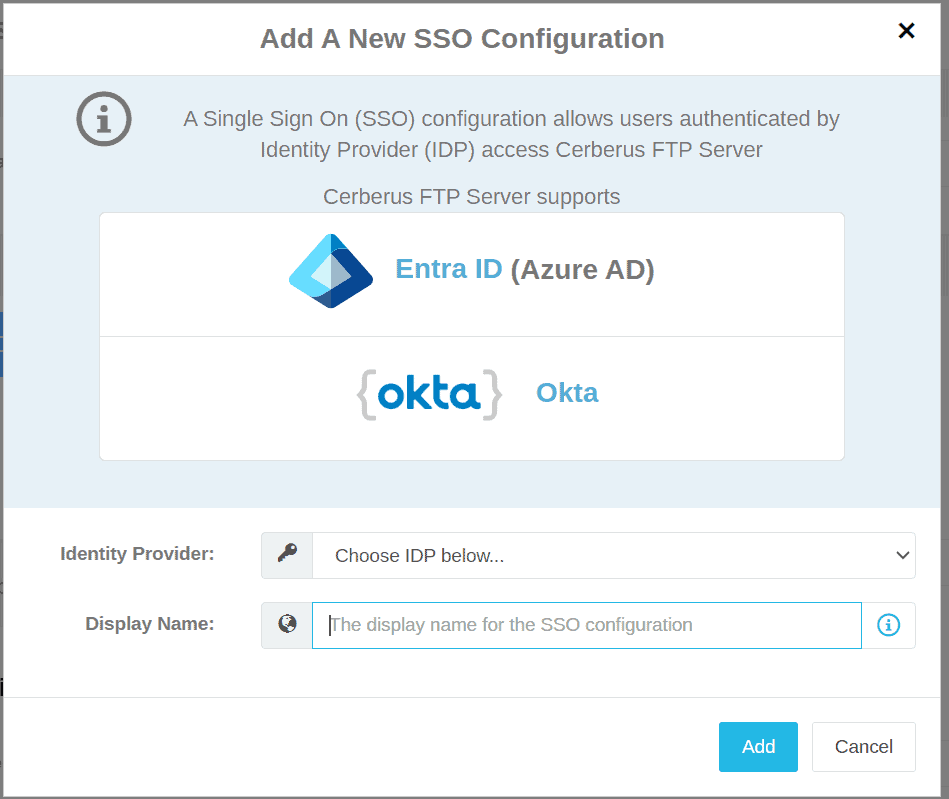 Organizations maintaining a cloud-based Microsoft Entra ID (formerly Azure Active Directory) in Azure can use Cerberus FTP Server’s SAML support to enable Single Sign-On (SSO) for users, reducing daily friction for users in secure environments.
