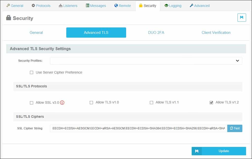 Cerberus’s FTPS server encryption options meet or exceed global security standards, including TLS-3-enabled encryption support for RSA and DSA as well as file transfer integrity checking using strong checksums based on SHA-512, SHA-256, or SHA-1 cryptographic hashes.